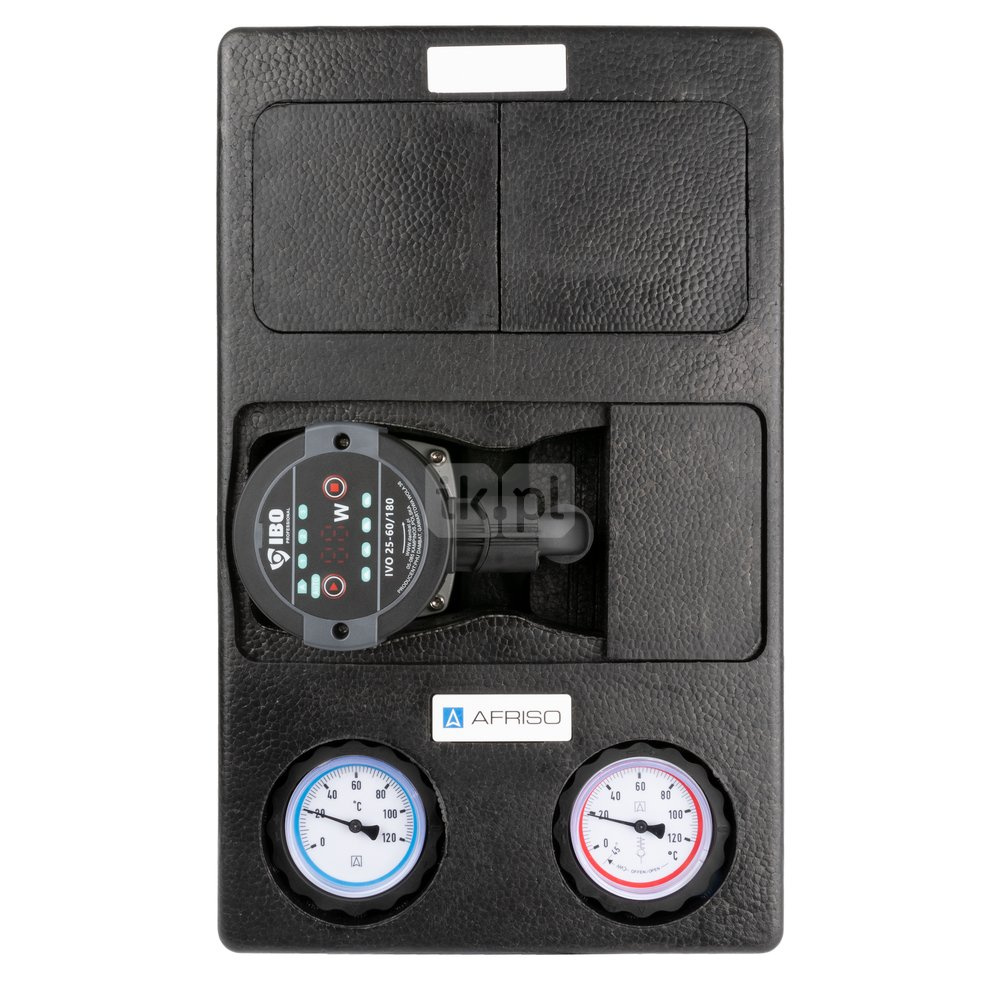 - Wyposażona w niezbędne komponenty: termometry, zawór zwrotny, zawory odcinające na zasilaniu i powrocie, zawór odcinający przed pompą i izolację termiczną.