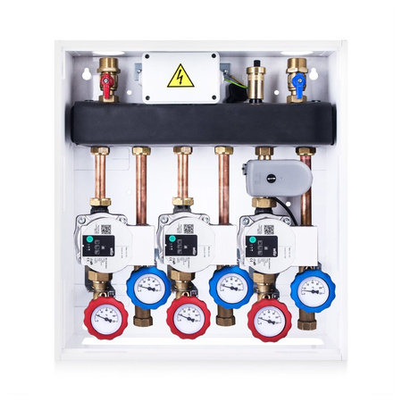 Grupa pompowa VITZONE 112 - 2 bezpośrednie pompowe obiegi grzewcze, bez podmieszania + 1 obieg grzewczy z zaworem 3-drogowym mieszającym i siłownikiem