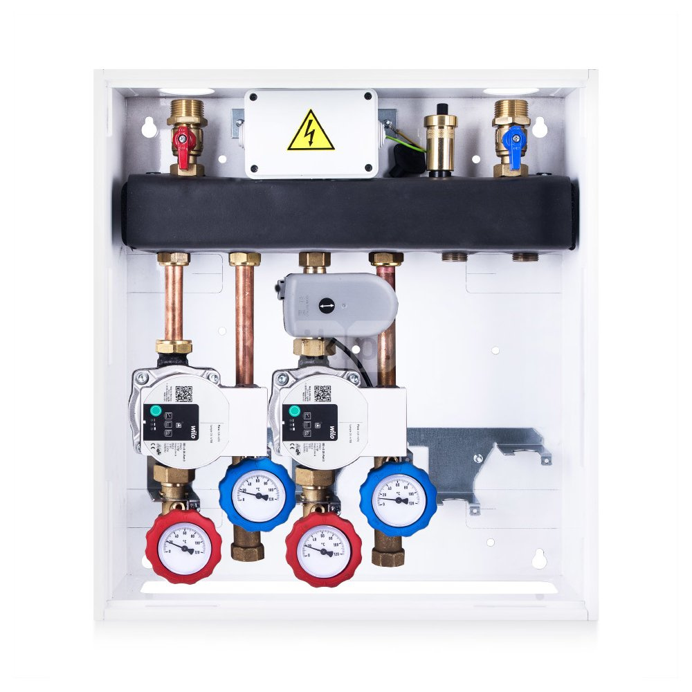 Grupa pompowa VITZONE 120 - 1 bezpośredni pompowy obieg grzewczy, bez podmieszania + 1 obieg grzewczy z zaworem 3-drogowym mieszającym i siłownikiem