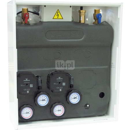 Zestawy mieszające ze sprzęgłem hydraulicznym AZB to kompaktowe zestawy hydrauliczne w szafkach, przeznaczone do hydraulicznego oddzielenia źródła ciepła i dwóch lub trzech stref grzewczych. W zależności od wersji, poszczególne strefy mogą być zarówno zasilane medium o temperaturze uzyskiwanej na wyjściu ze źródła ciepła (obiegi bezpośrednie, bez mieszania), jak i o temperaturze niższej, uzyskiwanej dzięki mieszaniu.