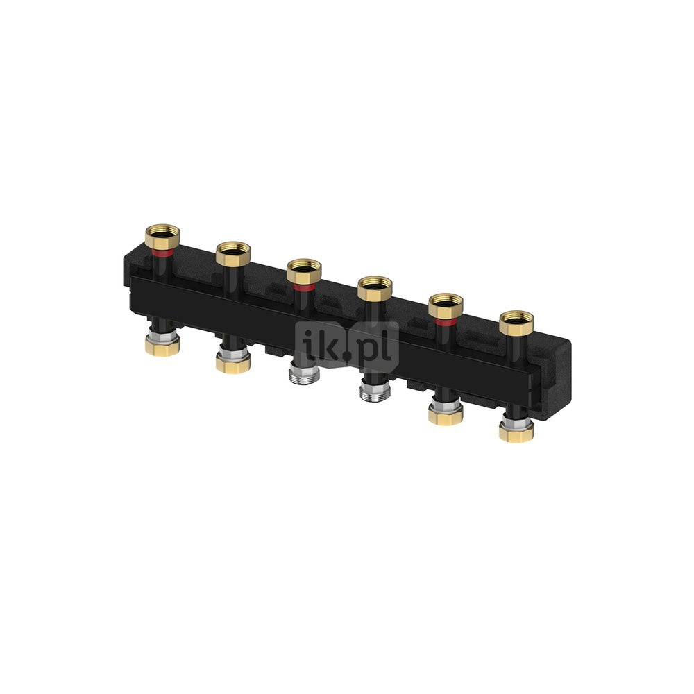 Z izolacją EPP, każdy z 2, 3 lub 4 parami przyłączy skierowanymi do góry lub do dołu (można również zastosować przyłącza dolne), do montażu grup pompowych (pasuje do grup pompowych z rozstawem osi 125 mm), ze wszystkimi niezbędnymi śrubunkami do wykonania montażu.