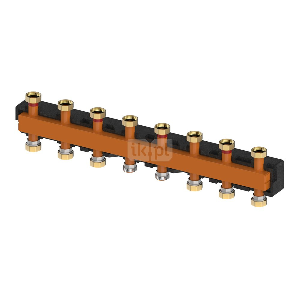 Z izolacją EPP, każdy z 2, 3 lub 4 parami przyłączy skierowanymi do góry lub do dołu (można również zastosować przyłącza dolne), do montażu grup pompowych (pasuje do grup pompowych z rozstawem osi 125 mm), ze wszystkimi niezbędnymi śrubunkami do wykonania montażu.