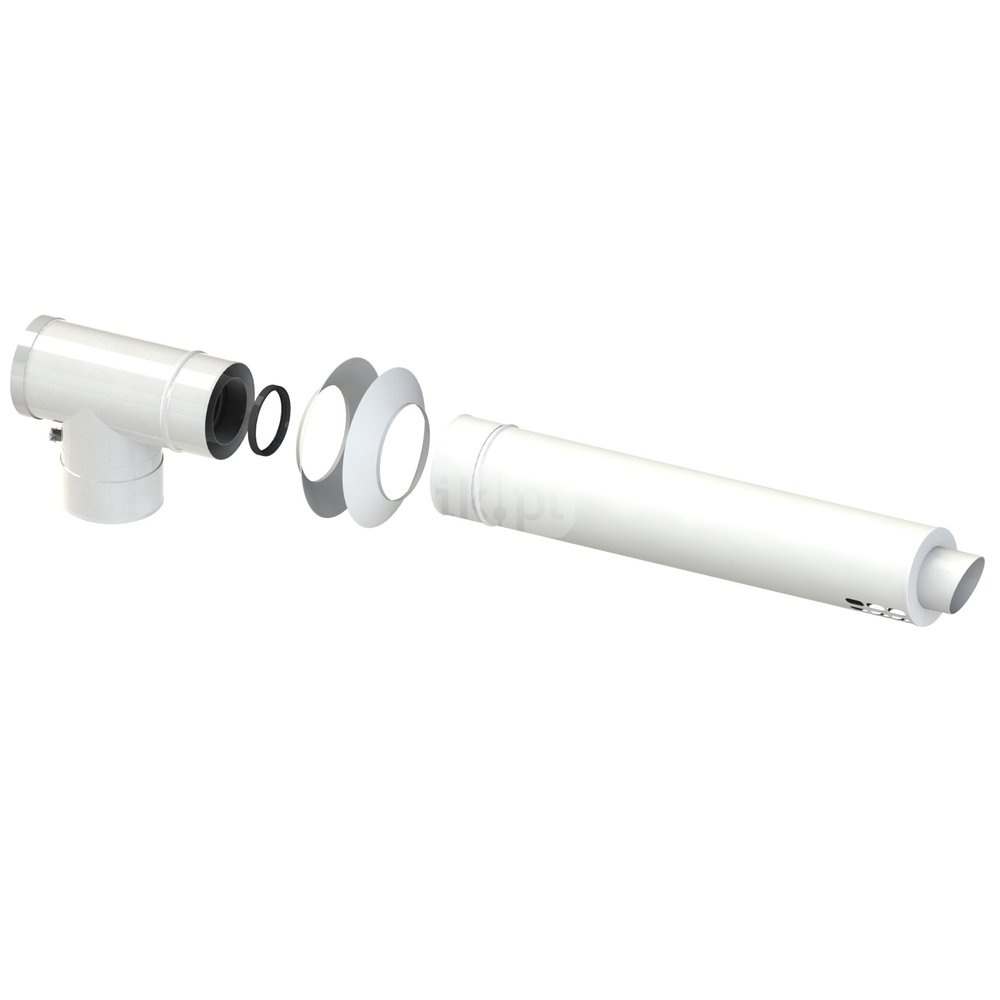 System spalinowo-powietrzny Concept przeznaczony jest do odprowadzania spalin z urządzeń grzewczych z zamkniętą komorą spalania np. kotły turbo lub kondensacyjne. Urządzenia te charakteryzuje wysoka sprawność, stosunkowo niska temperatura spalin oraz nadciśnienie panujące na wylocie z króćca spalin. Zestaw powietrzno-spalinowy poziomy zbudowany jest z dwóch współosiowych rur, zewnętrznej obudowy i wewnętrznej rury spalinowej. Zestaw umożliwia odprowadzenie spalin z urządzeń z zamkniętą komorą spalania, kondensacyjnych lub turbo, bezpośrednio przez zewnętrzną ścianę budynku. Kanałem powietrznym, jaki tworzą między sobą rura spalinowa i osłonowa jest dostarczane świeże powietrze do komory spalania urządzenia grzewczego. Szczelność części spalinowej w zakresie nadciśnienia do 200 Pa i temperatury do 120°C gwarantuje połączenie kielichowe z wewnętrzną uszczelką. Zestaw zawiera: trójnik 87° - rewizyjny z króćcami pomiarowymi, kołnierz (2 szt.), rurę 750 mm z zakończeniem poziomym, uszczelkę silikonową (wewnętrzną).