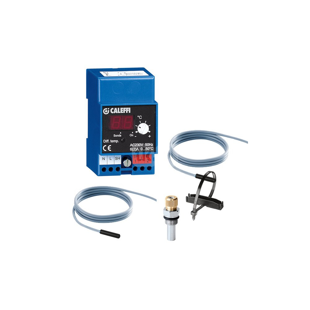 Regulator różnicowy temperatury do instalacji solarnych z wyjściem przekaźnika. W komplecie z czujnikiem kontaktowym i czujnikie