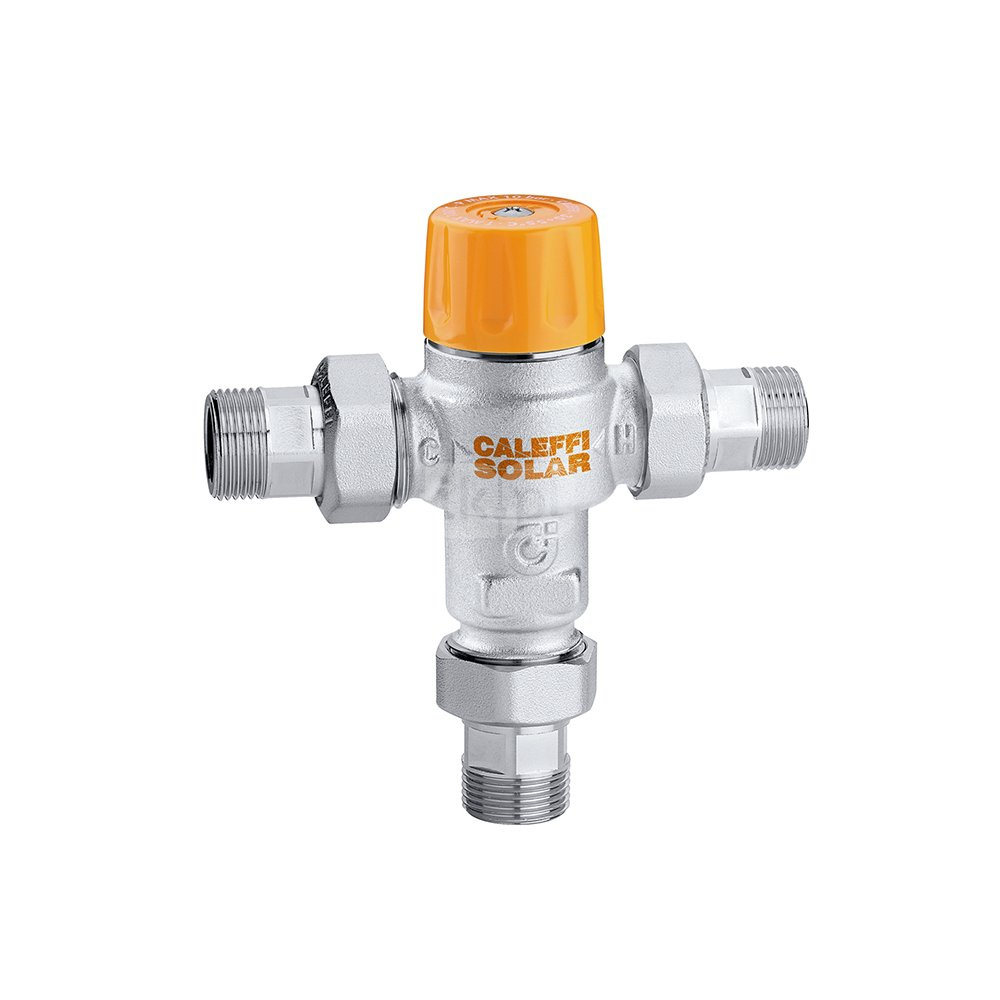 Regulowany termostatyczny antyoparzeniowy zawór mieszający z zaworami zwrotnymi i filtrami do instalacji solarnych. Z funkcją oc