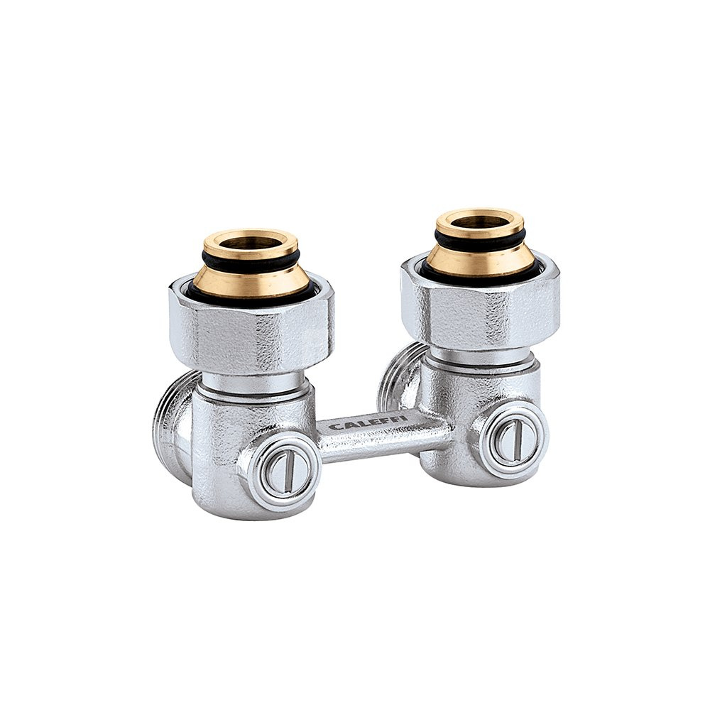 Podwójny zawór podłączeniowy do grzejników stalowych z wkładką termostatyczną. Wersja kątowa - 3/4" GZ