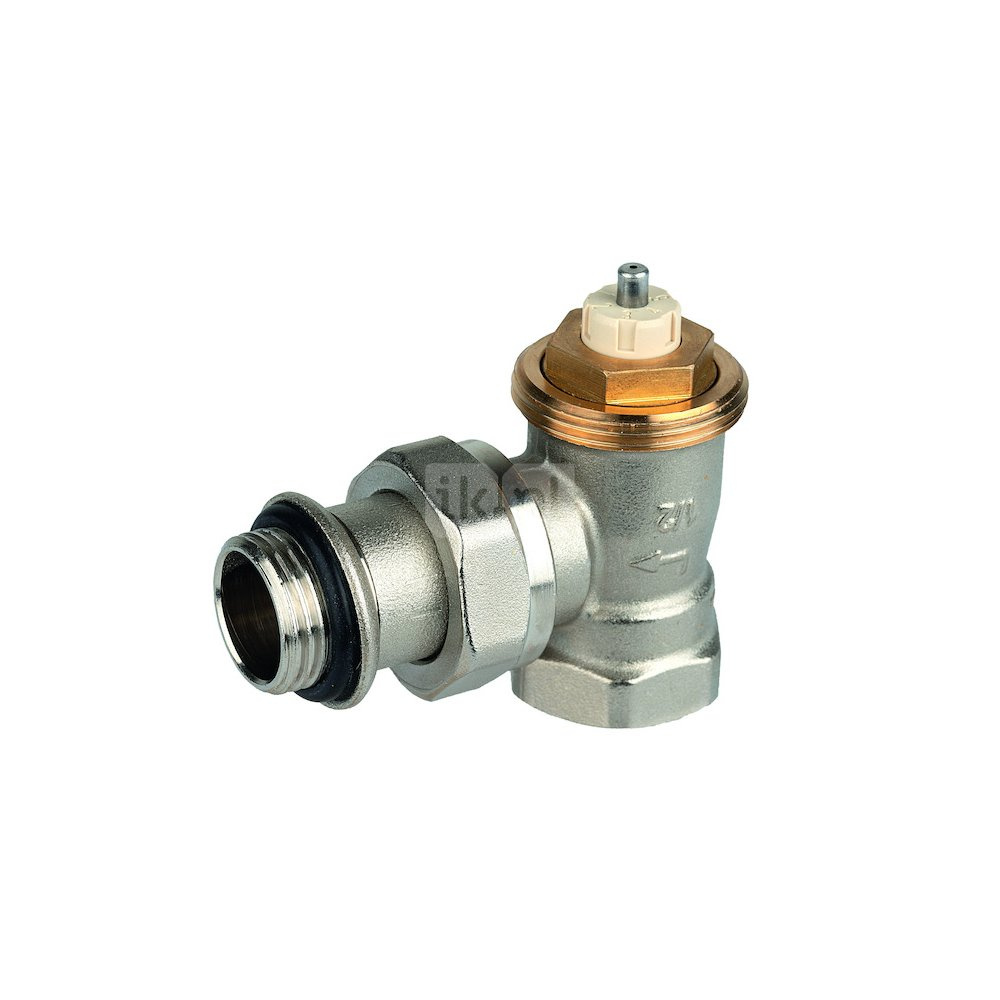 Zawór termostatyczny, kątowy, wkładka SX, 3/8", gwint wewnętrzny, ze złączką do grzejnika z uszczelnieniem miękkim