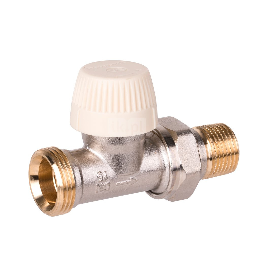 2. Zawór termostatyczny z wkładką SX, prosty, przyłącze 1/2". Korpus z gwintami zewnętrznymi i złączką do grzejnika z uszczelnieniem metal-metal