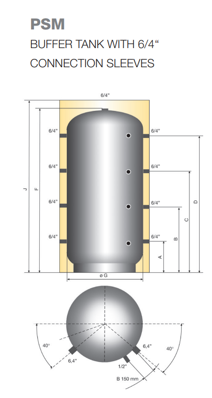 Zbiornik buforowy do instalacji solarnych i ogrzewania PSM firmy Austria Email (zbiornik buforowy z mufami podłączeniowymi 6/4”)