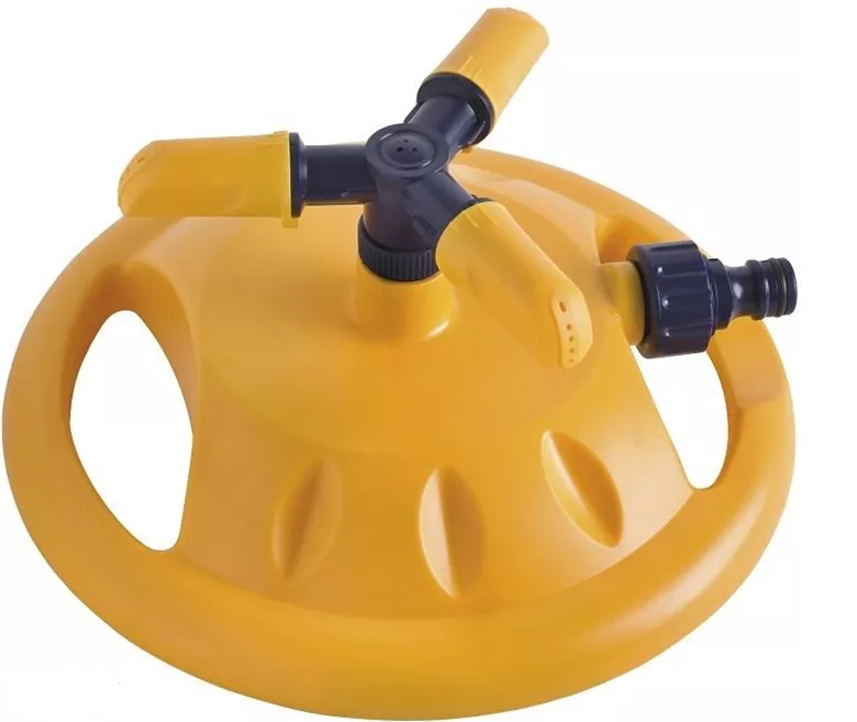 Zraszacz typu 3-drogowego - trzy strumienie wody na obrotowym trzonie . Posiada przyłącze do węża ogrodowego.